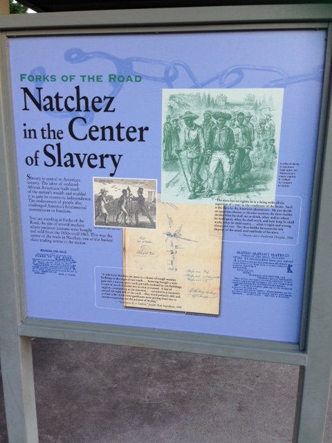 Before the evening was over, we decided to stop by Forks of the Road which is the site of several markets where enslaved humans were bought and sold from the 1830s until 1863. Natchez was one of the busiest slave trading towns in the nation. Over in the corner, we noticed cemented into the ground iron shackles that were used to bind the slaves together during transport. Standing on that piece of history brought such an overwhelming sense of loss and sadness while I thought about people being sold like cattle to the highest bidder, without any say in how their life would turn out. After reading different slaves’ accounts documented on display boards at this historical landmark, I walked away with a deeper understanding of the struggle and desperation of the enslaved people.